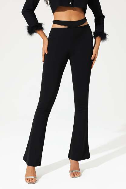 Magali Slim Bootstrap Casual Pants in Black