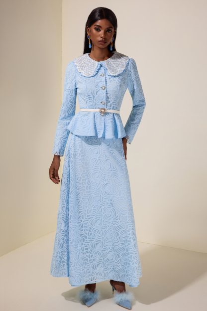 Claire Lace Nail Bead Embroidery Top & Midi Skirt Set