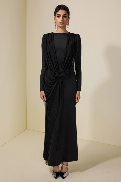 Alba Mesh Pleated Tie-Up Maxi Dress