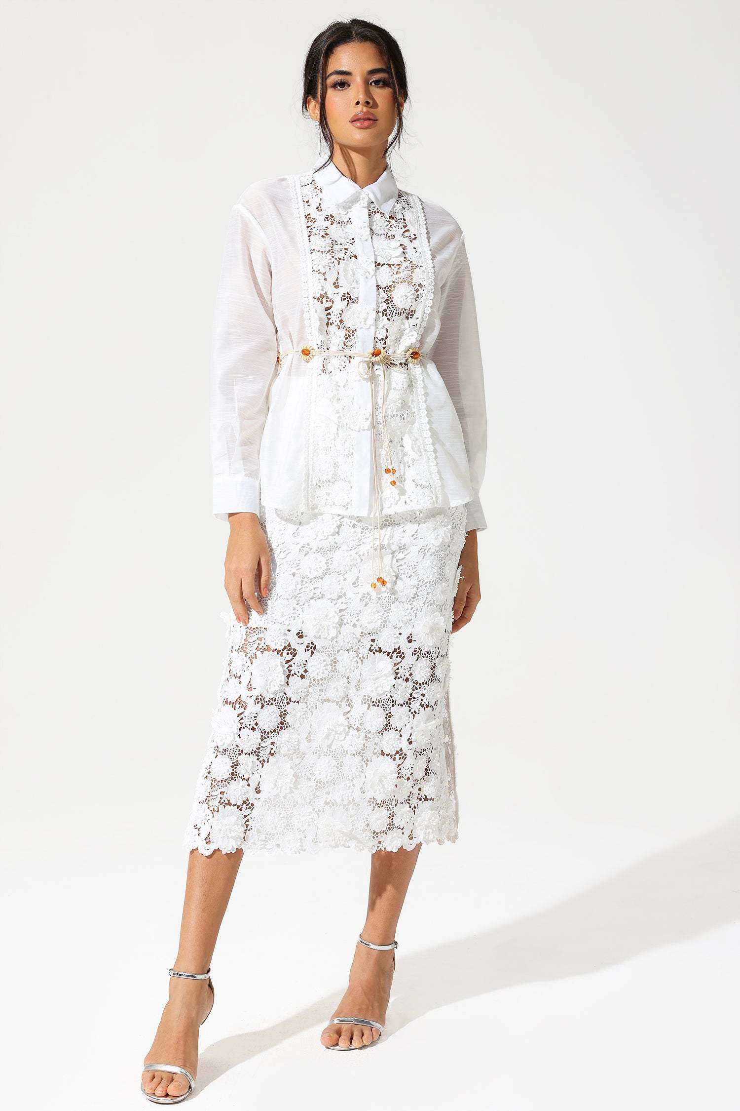 Margaud Lace Cut-Out Slit Dress Suit White in White